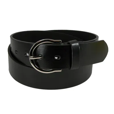 Women's Leather Adjustable Belt With Statement Buckle In Black