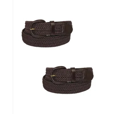 Men's Elastic Braided Belt With Covered Buckle (pack Of 2) In Brown