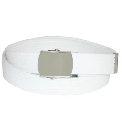 Cotton Adjustable Belt With Brass Buckle In White