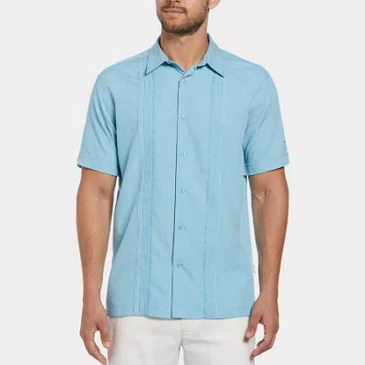 Embroidered Button-down Mens Short Sleeve Camp Shirt In Blue