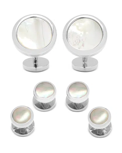 Double Sided Onyx & Mother-of-pearl Round Stud & Cufflink Set In Gold