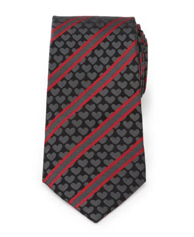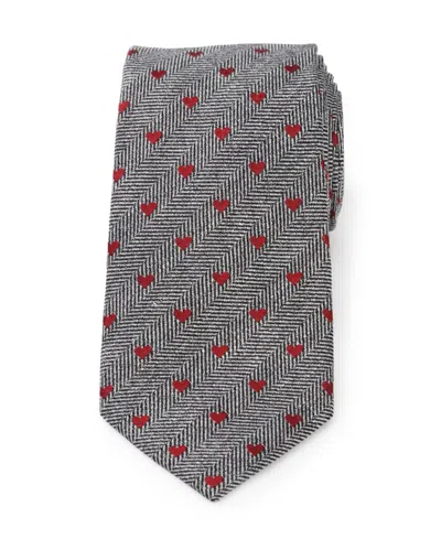 Men's Herringbone Heart Tie In Gray,ruby Red