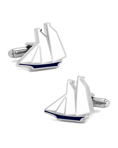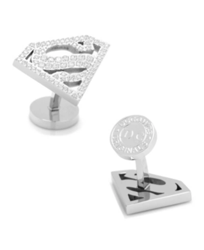 Stainless Steel White Pave Crystal Superman Cufflinks In Silver