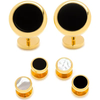 . Ox And Bull Trading Co. Semi-precious Cuff Links & Shirt Studs Set In Gold/onyx