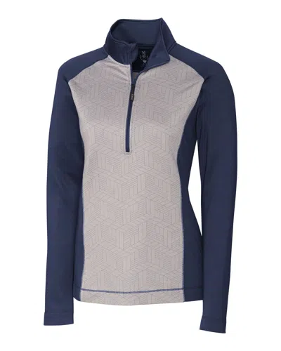 Traverse Camo Print Stretch Quarter Zip Womens Pullover Jacket In Blue