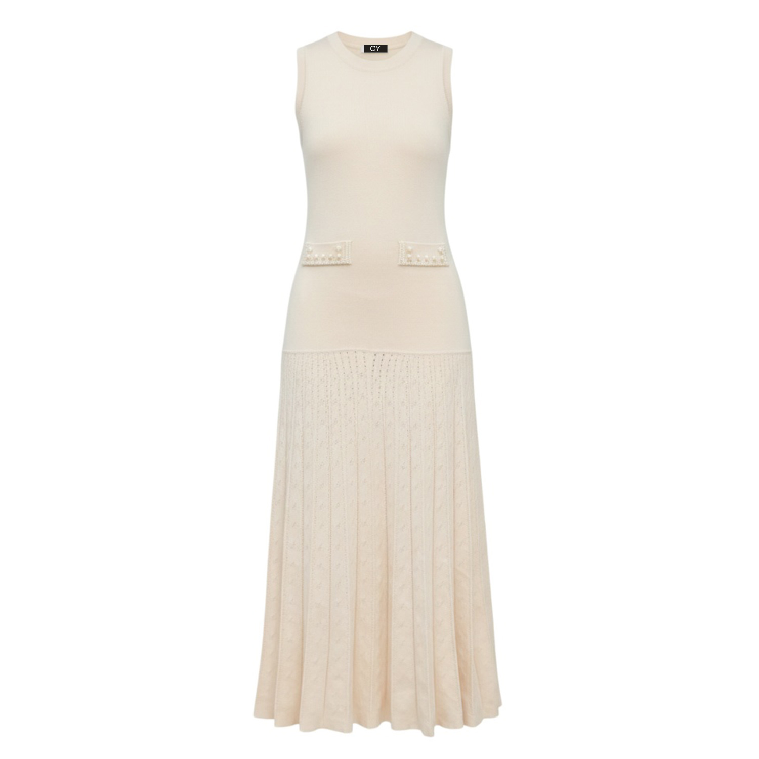 Neutrals Pointelle Knit Vest Top & Maxi Pleated Skirt In Cream In White