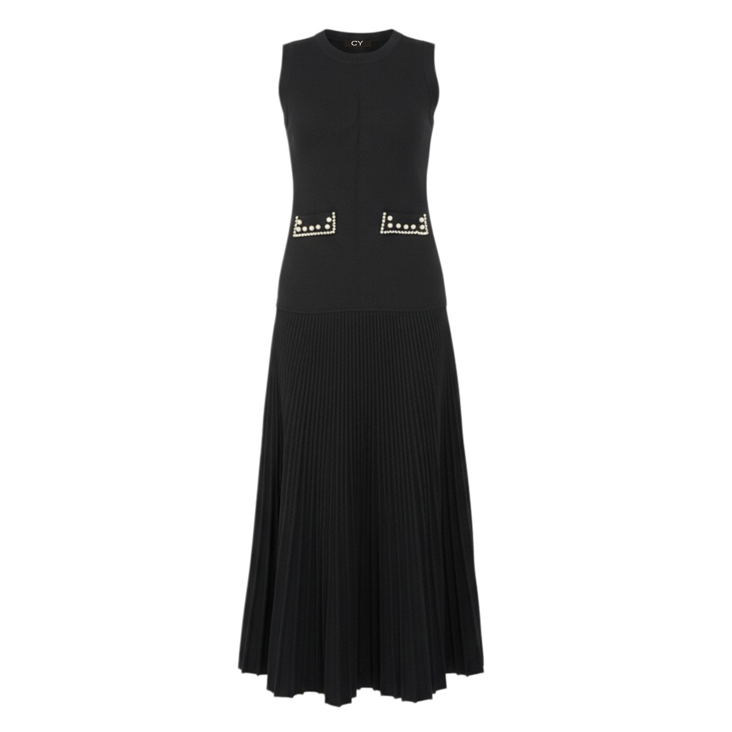 Pointelle Knit Vest Top & Maxi Pleated Skirt In Black