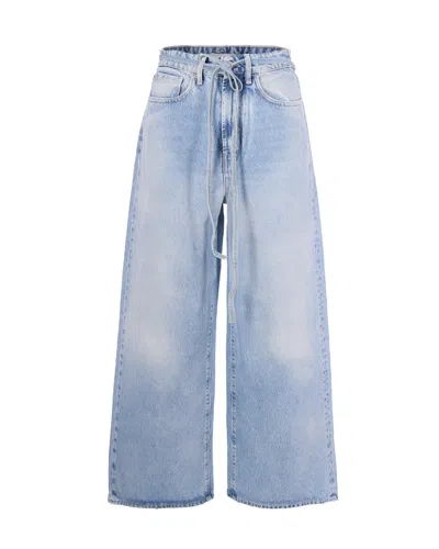 Light Blue Distressed Mid Waist Cropped Denim Jeans