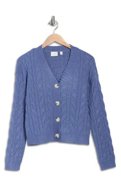 Crewneck Elbow Sleeve Waffle Knit Top In Blue