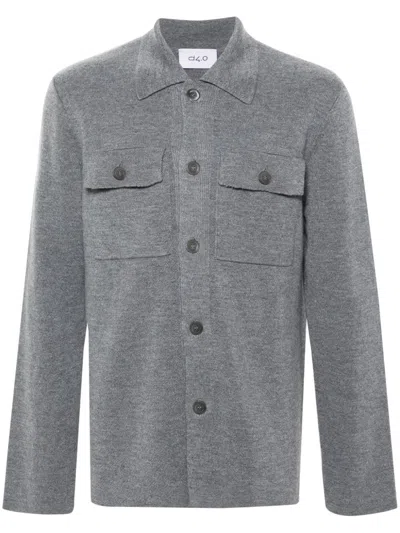 Blue Virgin Wool Knit Bomber-style Cardigan