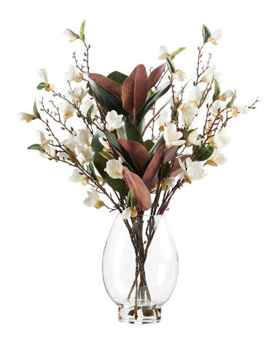 White Eva Magnolia Stem In Square Glass Vase
