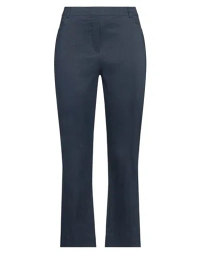 D. Exterior Woman Pants Navy Size 10 Linen, Elastane In Blue
