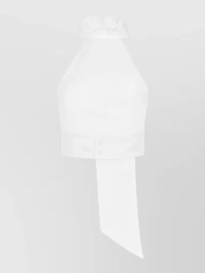 Bow Detail Cropped Halterneck Sleeveless Top In White
