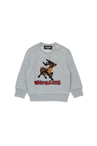 Kids' Felpa Girocollo Con Stampa Fawn In Gray