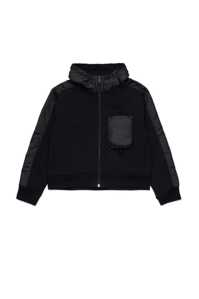 Kids' Hooded Sweatshirt With Nylon Details In Black