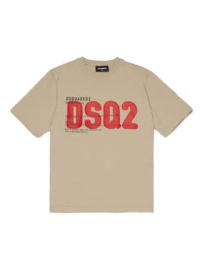 Kids' Logo-detail Crew-neck T-shirt In Brown