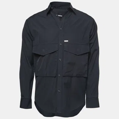 Black Cotton Pocket Detailed Button Front Shirt In Blue