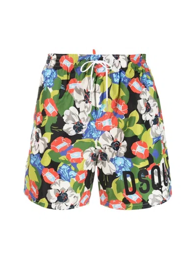 Flowers Print Logo Swim Shorts In Multi