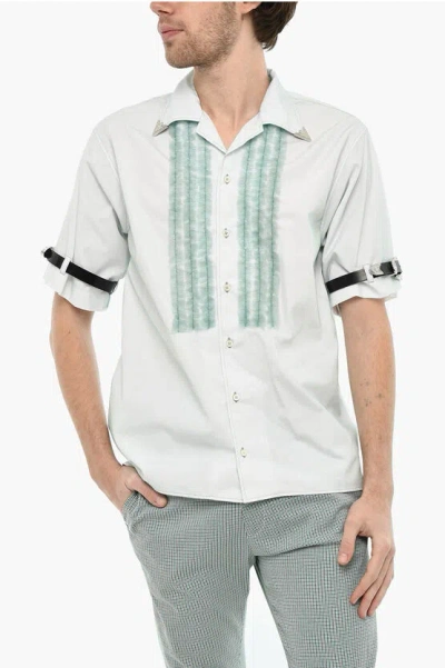 Nylon Shirt With Sleeve Belts And Tulle Details In White