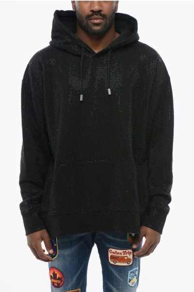 Rhinestoned Cotton Ibra Hoodie In Black