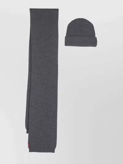 Ribbed Knit Hat Set With Folded Cuff In Gray