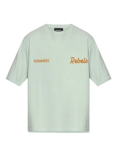 White Crewneck T-shirt With Dsq2 Logo In Cotone Man