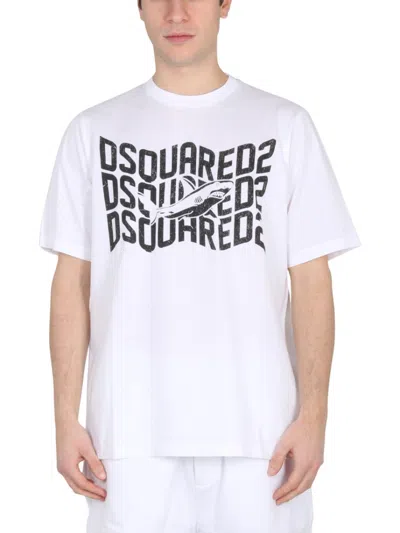 Cotton D2 Gothic Loose Fit T-shirt With Rhinestones In White