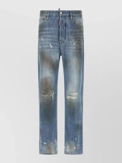Loose Twist Jeans Distressed Faded Five Pocket In Blue
