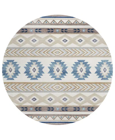 Phoenix Washable Ph1 8' X 8' Round Area Rug In Azure