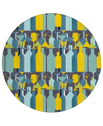 Kendall Kitchen Washable Ke16 8' X 8' Round Area Rug In Yellow