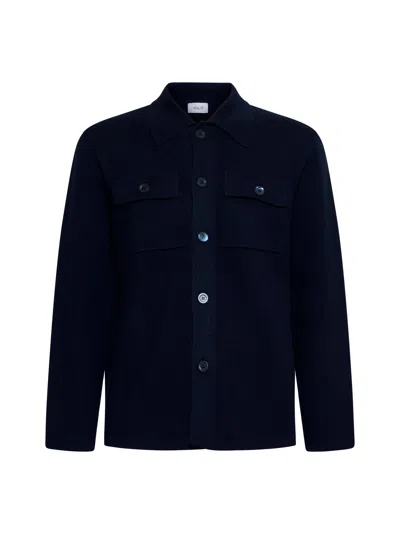 Blue Virgin Wool Knit Shirt In Black