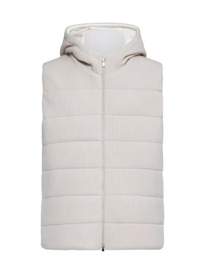 Pink Knit Padded Hooded Vest In Neutral