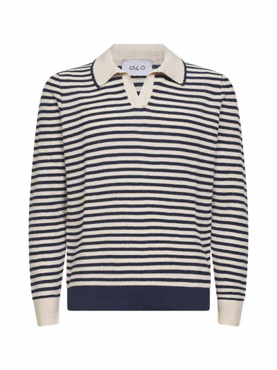 Striped Linen And Cotton Knit Long-sleeved Polo Shirt In Multi