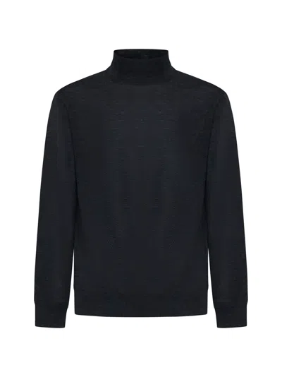 Dark Grey Wool Blend Knit Polo Shirt In Gray