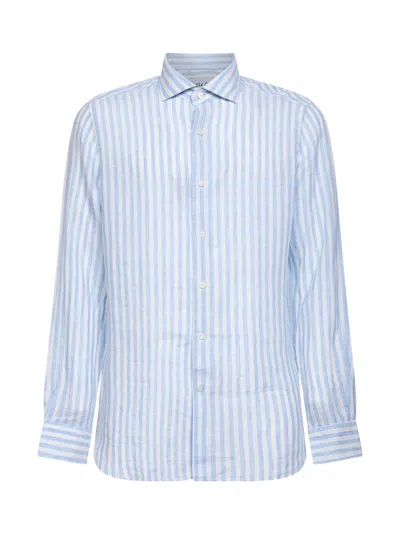 Light Blue And White Striped Seersucker Shirt-style Polo Shirt