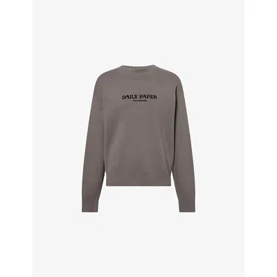 Mens Grey Blue Velvet-branding Crewneck Cotton-knit Jumper In Brown