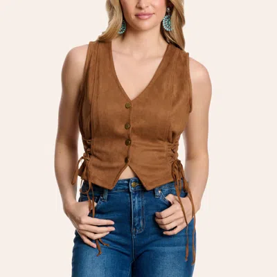 Women's Brown Faux Suede Side Lace-up Vest