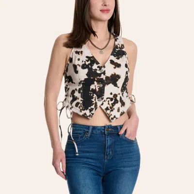 Women's Cow Print Side Lace Vest In White