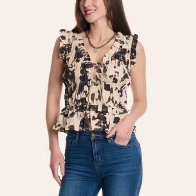 Women's Cow Print Sleeveless Peplum Top In White