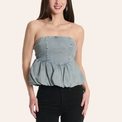 Women's Light Wash Denim Strapless Bubble Top In Blue