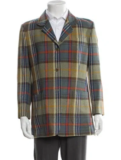 Pre-owned Silk Plaid Print Blazer In Green