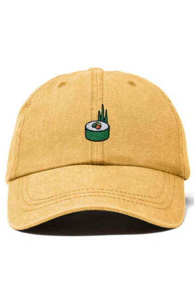 Sushi Roll Embroidered Dad Hat In Washed Gold