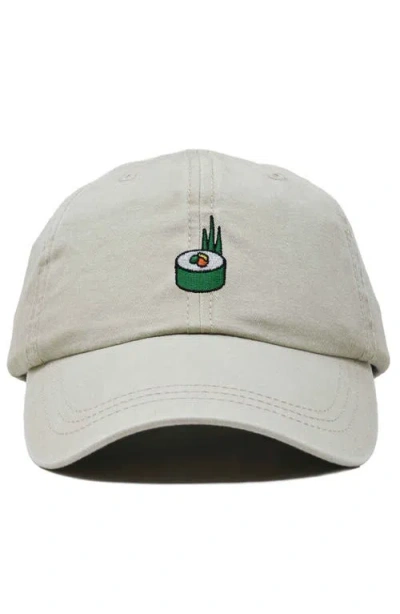Sushi Roll Embroidered Dad Hat In Washed Stone White