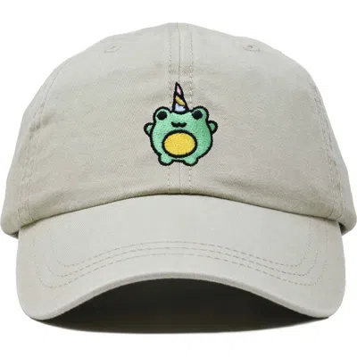 Froggy Unicorn Embroidered Cap In Washed Stone White