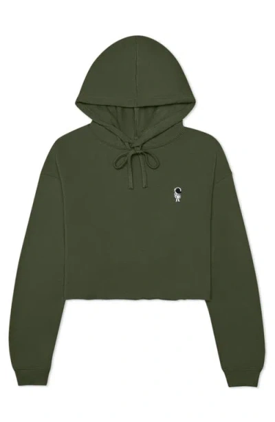 Black Cat Cropped Fleece Hoodie In Atlantic Green