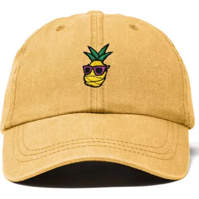 Pineapple Embroidered Dad Hat In Washed Stone White
