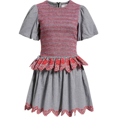 Audrey Smocked Puff Sleeve Organic Cotton Minidress In Black