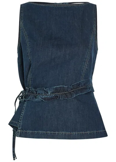 Maxime Ruffled Denim Top In Blue