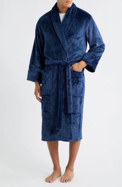Wide Stripe Plush Shawl Collar Robe In Blue