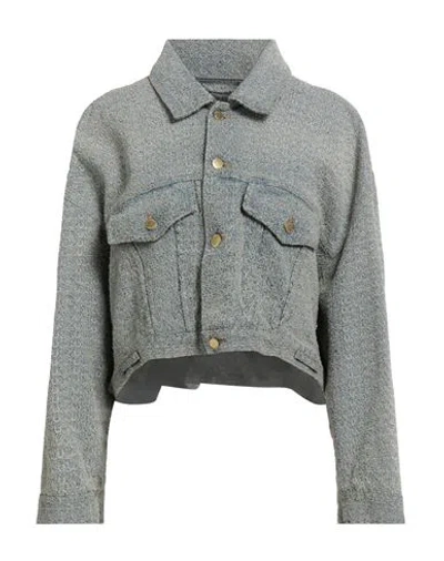 Woman Denim Outerwear Blue Size M Cotton In Gray
